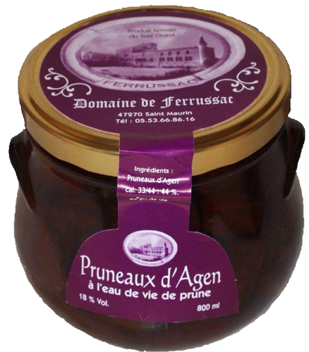Pruneaux d’Agen à l’eau de vie de prune d'enteTitre 18°, en bocal verre 850 ml pour terminer agréablement vos repas de fête.
